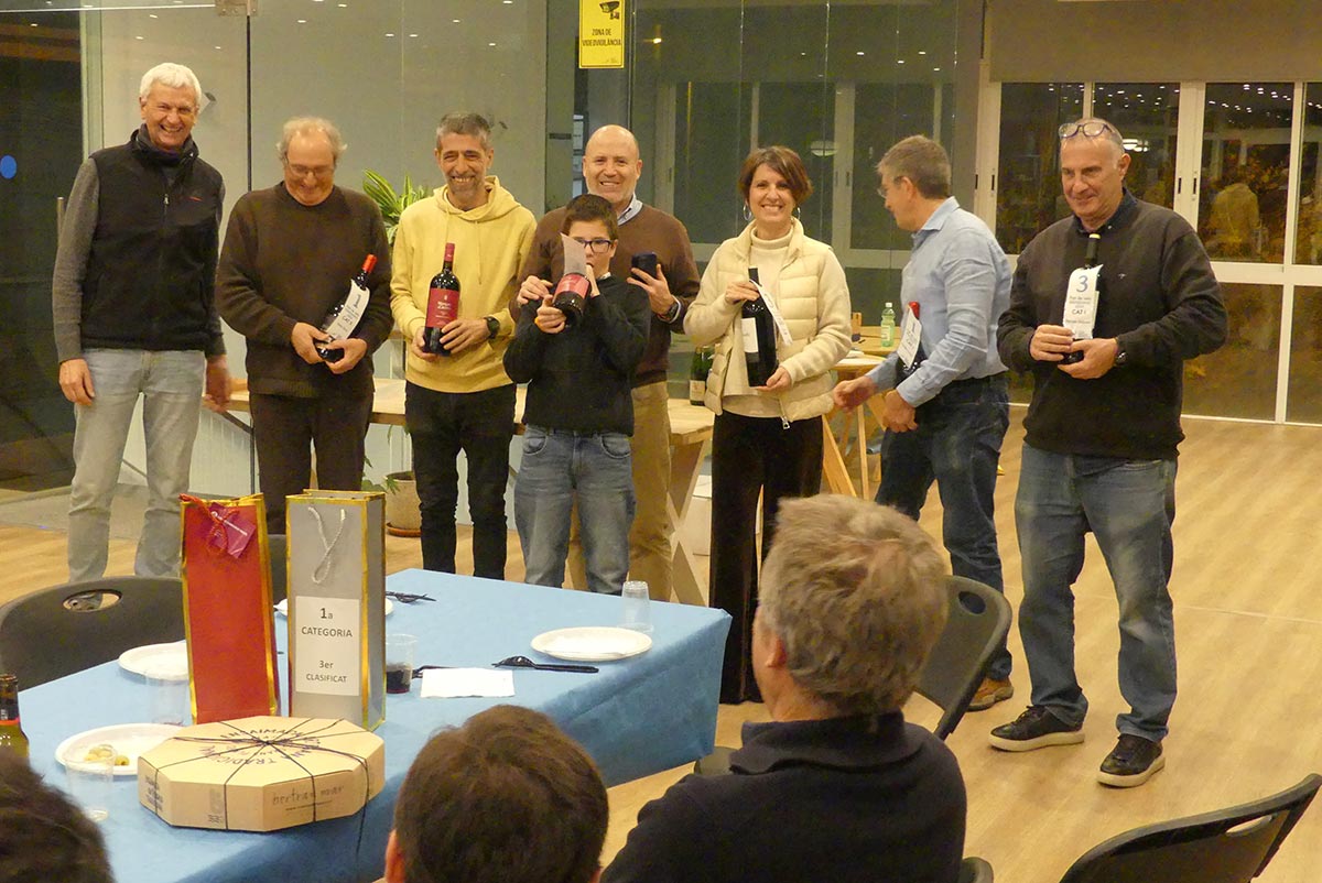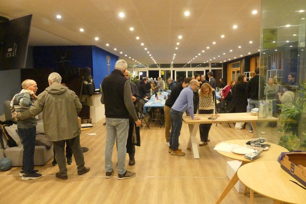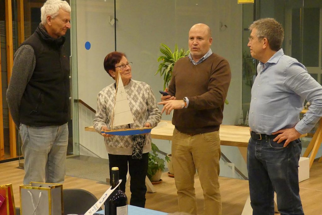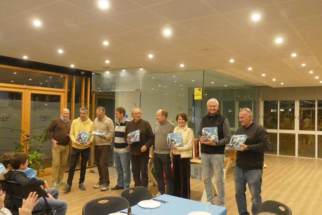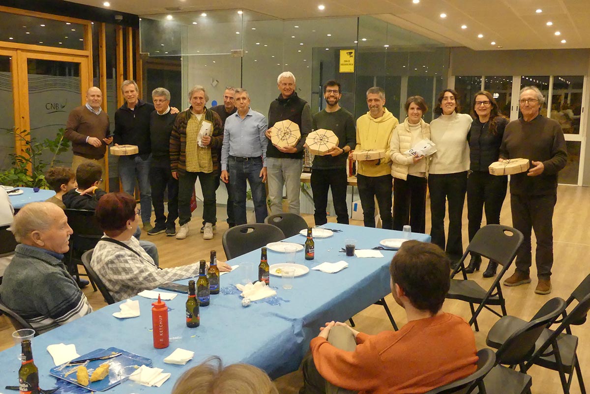 El divendres dia 30-1 la Secció Patí de Vela va celebrar el tradicional Sopar de Vela en el Club. El Sopar – una cosa rústica – amb la barbacoa a la terrassa i les taules i cadires en l’espai de la primera planta del Club entre bar i sala polivalent. Després del sopar lliurem tots els trofeus de les regates de 2025, la maqueta del patí a vela per al guanyador del Rànquing 2025 – Carles Crespo – lliuro la Teresa, la dona del constructor de les maquetes dels patins i del pont de petrolí, Francisco Ortega.