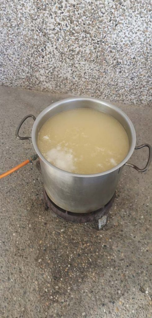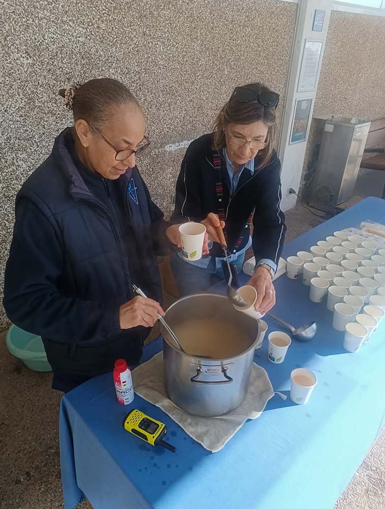 Un migdia ple bon humor i predisposició, ambient familiar, gent de diferents edats,  aigua fresqueta i un caldo calent i boníssim (gentilesa de Karns Fibla).